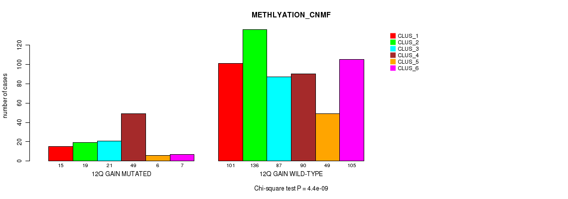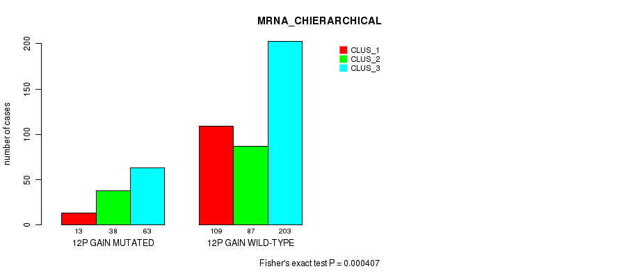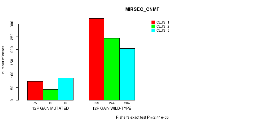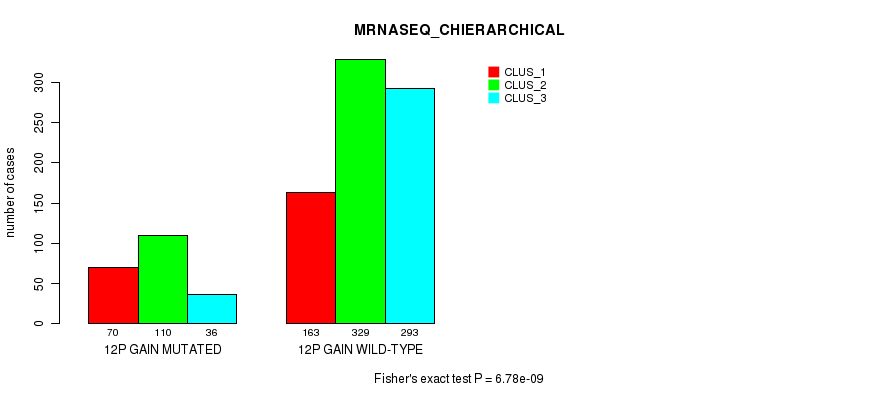 12p gain cnv correlated to 'MRNA_CHIERARCHICAL', 'CN_CNMF', 'METHLYATION_CNMF', 'MRNASEQ_CNMF', 'MRNASEQ_CHIERARCHICAL', 'MIRSEQ_CNMF', and 'MIRSEQ_CHIERARCHICAL'.