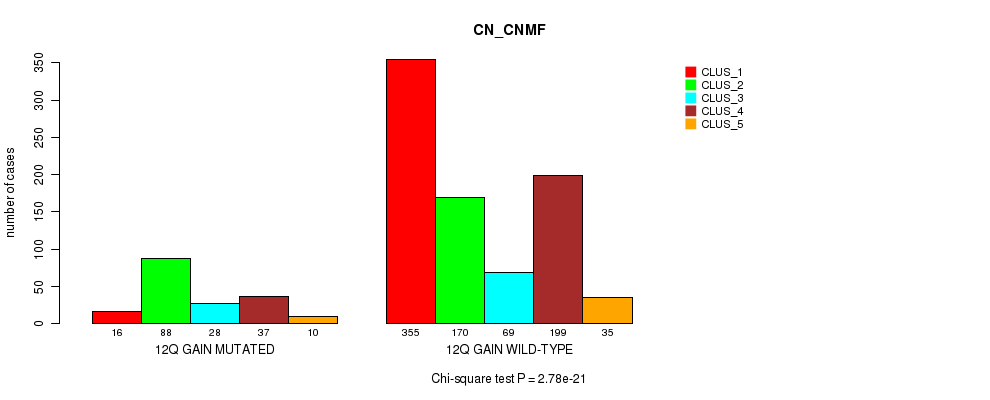 12q gain cnv correlated to 'CN_CNMF', 'METHLYATION_CNMF', 'MRNASEQ_CNMF', and 'MRNASEQ_CHIERARCHICAL'.