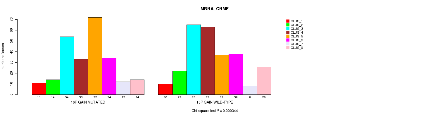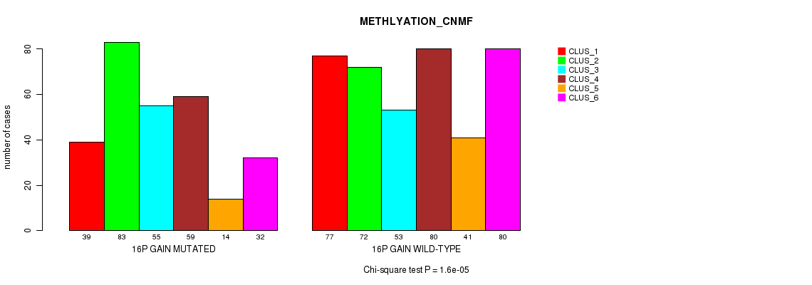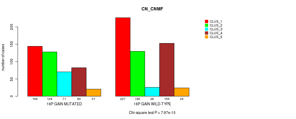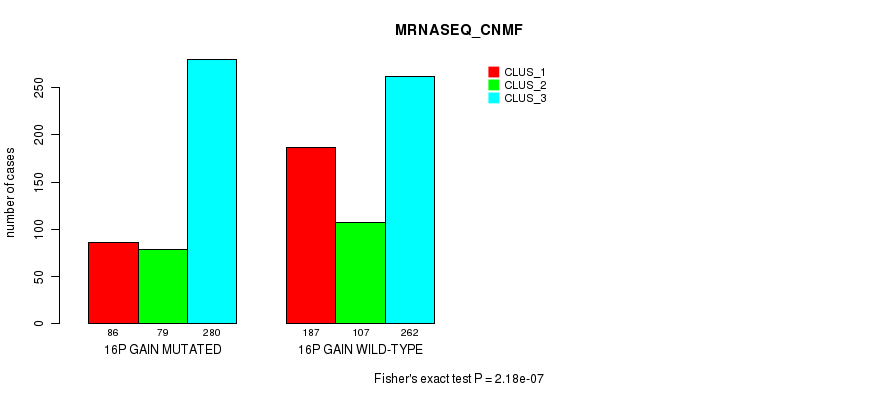 16p gain cnv correlated to 'MRNA_CNMF', 'MRNA_CHIERARCHICAL', 'CN_CNMF', 'METHLYATION_CNMF', 'MRNASEQ_CNMF', 'MRNASEQ_CHIERARCHICAL', 'MIRSEQ_CNMF', 'MIRSEQ_MATURE_CNMF', and 'MIRSEQ_MATURE_CHIERARCHICAL'.