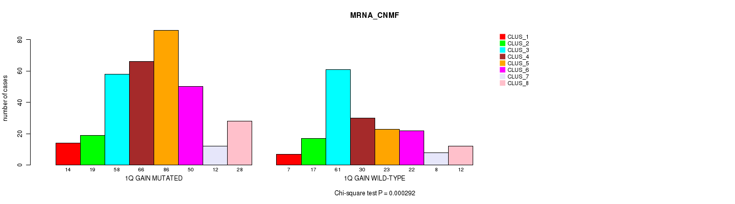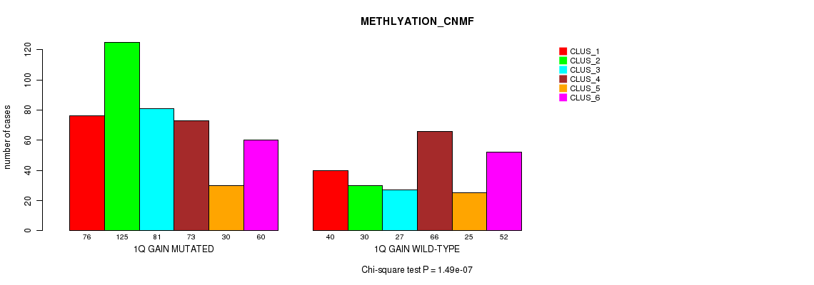 1q gain cnv correlated to 'MRNA_CNMF', 'CN_CNMF', and 'METHLYATION_CNMF'.