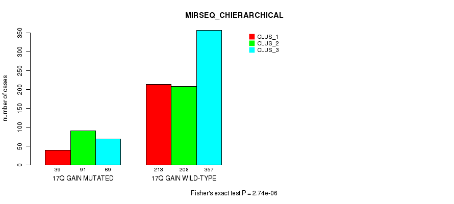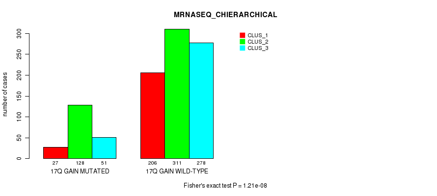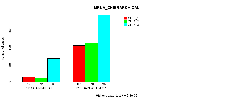 17q gain cnv correlated to 'MRNA_CNMF', 'MRNA_CHIERARCHICAL', 'CN_CNMF', 'METHLYATION_CNMF', 'MRNASEQ_CNMF', 'MRNASEQ_CHIERARCHICAL', and 'MIRSEQ_CHIERARCHICAL'.