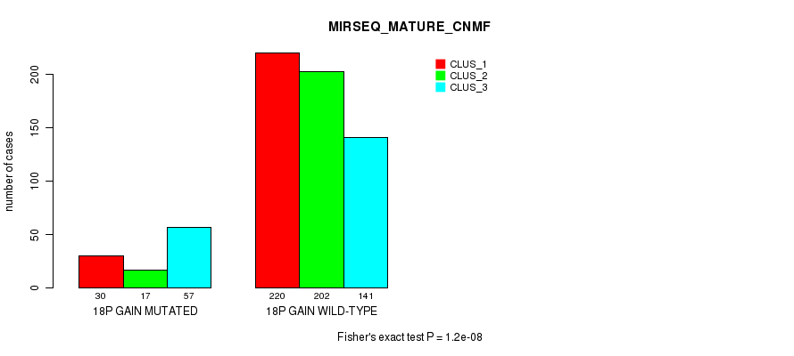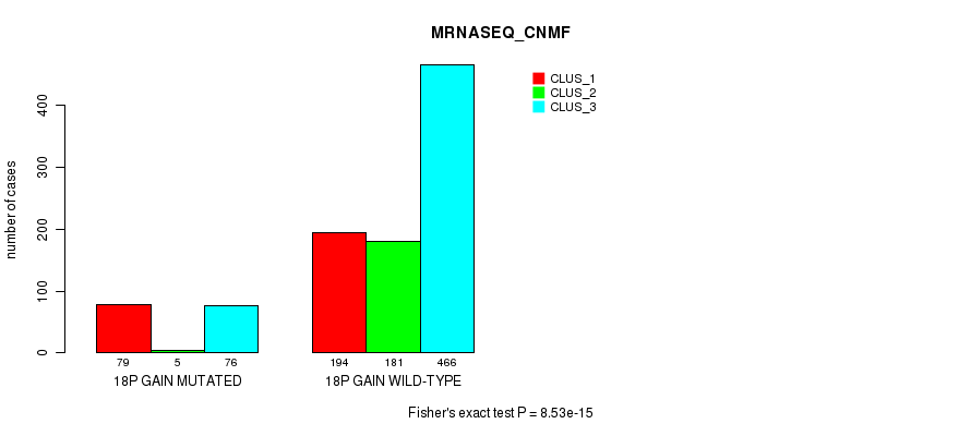 18p gain cnv correlated to 'MRNA_CNMF', 'MRNA_CHIERARCHICAL', 'CN_CNMF', 'METHLYATION_CNMF', 'RPPA_CHIERARCHICAL', 'MRNASEQ_CNMF', 'MRNASEQ_CHIERARCHICAL', 'MIRSEQ_CNMF', 'MIRSEQ_CHIERARCHICAL', 'MIRSEQ_MATURE_CNMF', and 'MIRSEQ_MATURE_CHIERARCHICAL'.