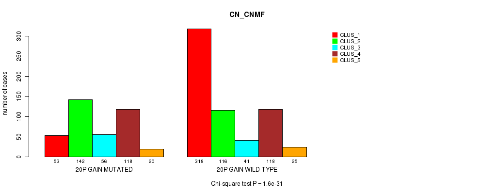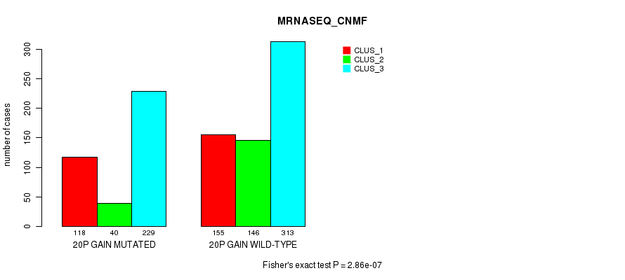 20p gain cnv correlated to 'MRNA_CNMF', 'CN_CNMF', 'METHLYATION_CNMF', 'MRNASEQ_CNMF', 'MRNASEQ_CHIERARCHICAL', 'MIRSEQ_CNMF', 'MIRSEQ_CHIERARCHICAL', and 'MIRSEQ_MATURE_CHIERARCHICAL'.