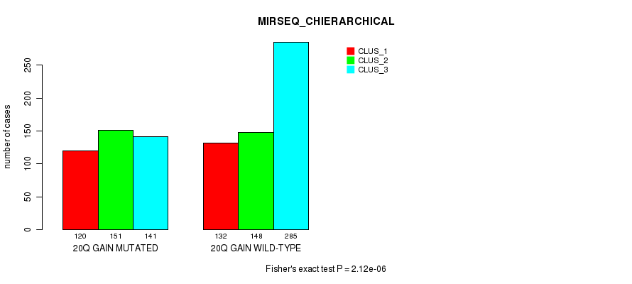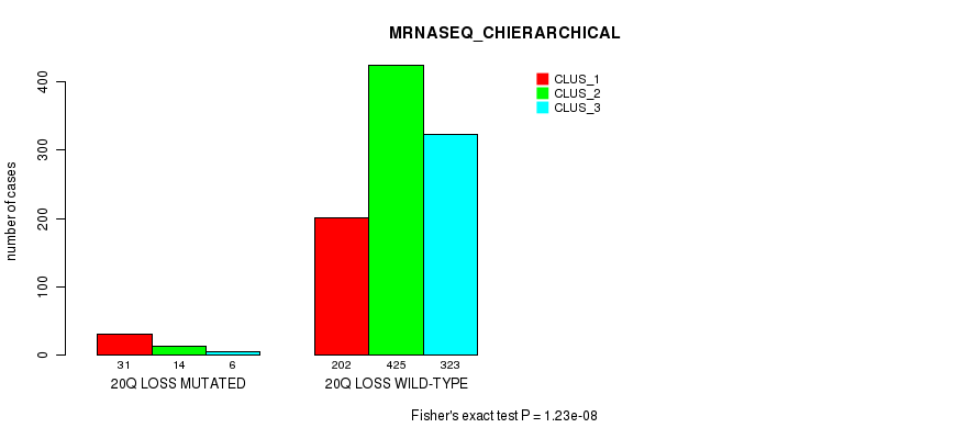Figure S543. Get High-res Image Gene #77: '20q loss' versus Molecular Subtype #10: 'MIRSEQ_CHIERARCHICAL'