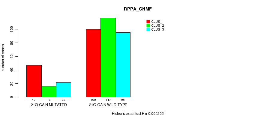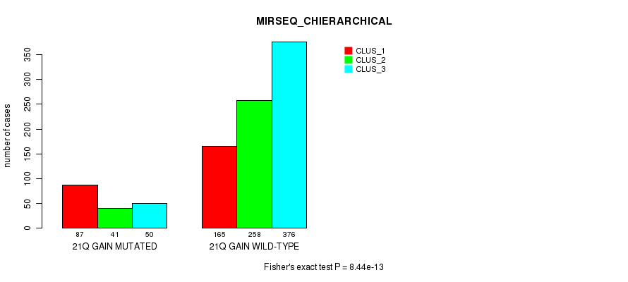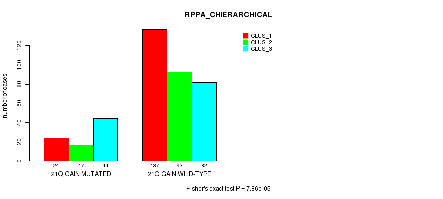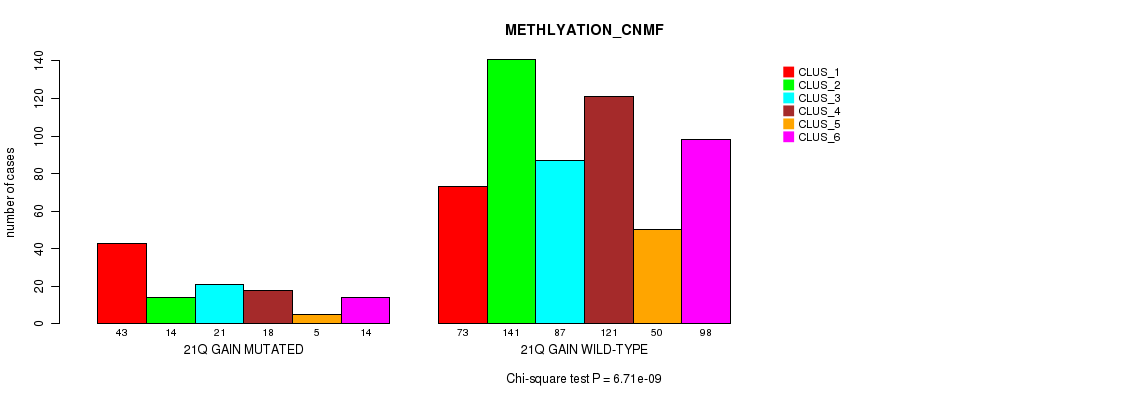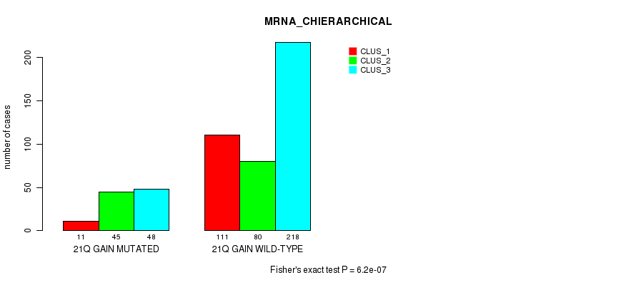21q gain cnv correlated to 'MRNA_CNMF', 'MRNA_CHIERARCHICAL', 'CN_CNMF', 'METHLYATION_CNMF', 'RPPA_CNMF', 'RPPA_CHIERARCHICAL', 'MRNASEQ_CNMF', 'MRNASEQ_CHIERARCHICAL', 'MIRSEQ_CNMF', 'MIRSEQ_CHIERARCHICAL', 'MIRSEQ_MATURE_CNMF', and 'MIRSEQ_MATURE_CHIERARCHICAL'.