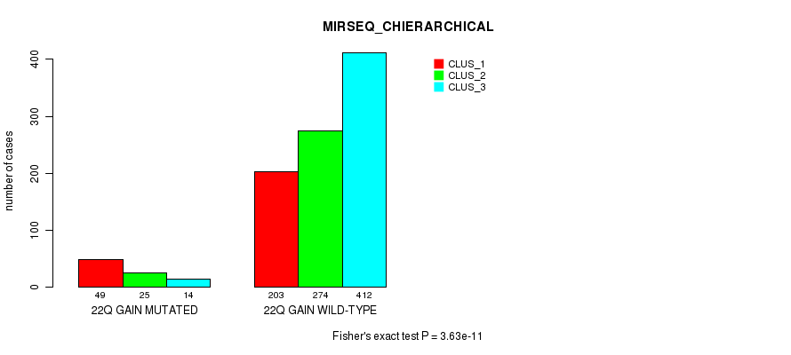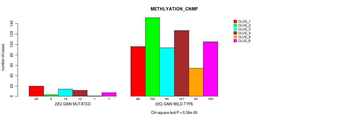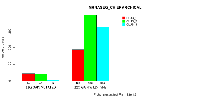 22q gain cnv correlated to 'MRNA_CNMF', 'MRNA_CHIERARCHICAL', 'CN_CNMF', 'METHLYATION_CNMF', 'RPPA_CNMF', 'MRNASEQ_CNMF', 'MRNASEQ_CHIERARCHICAL', 'MIRSEQ_CNMF', 'MIRSEQ_CHIERARCHICAL', 'MIRSEQ_MATURE_CNMF', and 'MIRSEQ_MATURE_CHIERARCHICAL'.