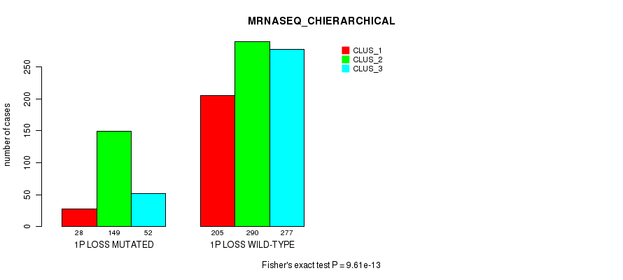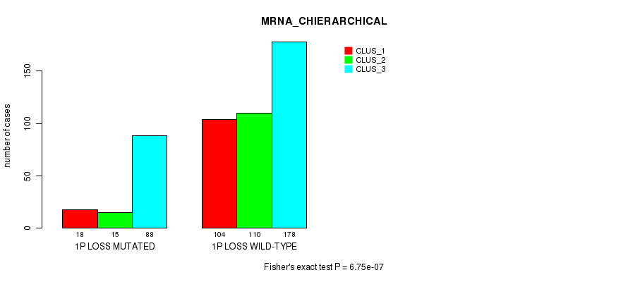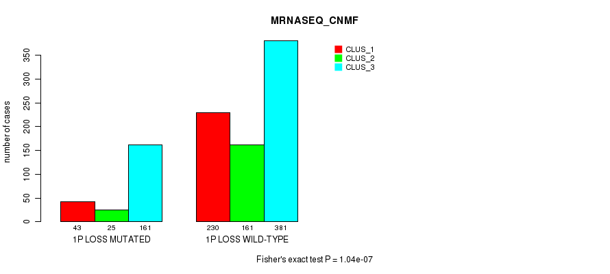 1p loss cnv correlated to 'MRNA_CNMF', 'MRNA_CHIERARCHICAL', 'CN_CNMF', 'METHLYATION_CNMF', 'MRNASEQ_CNMF', and 'MRNASEQ_CHIERARCHICAL'.