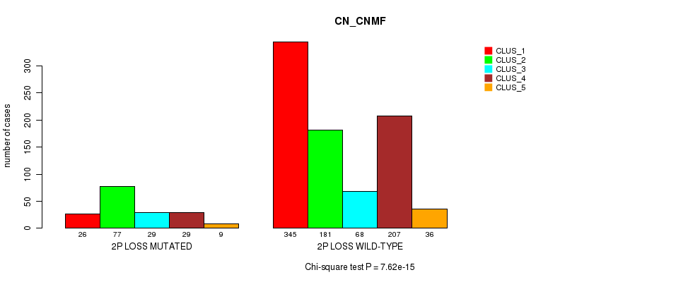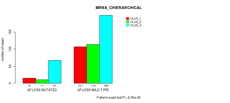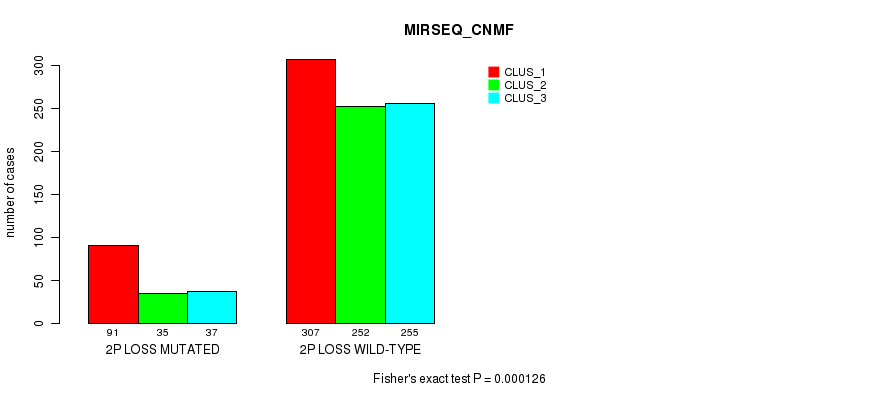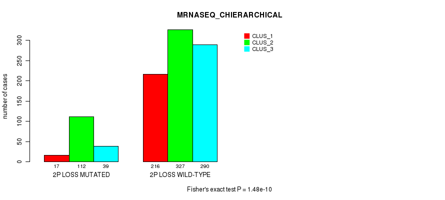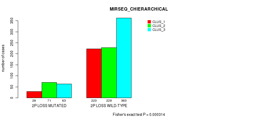 2p loss cnv correlated to 'MRNA_CHIERARCHICAL', 'CN_CNMF', 'METHLYATION_CNMF', 'MRNASEQ_CNMF', 'MRNASEQ_CHIERARCHICAL', 'MIRSEQ_CNMF', 'MIRSEQ_CHIERARCHICAL', and 'MIRSEQ_MATURE_CHIERARCHICAL'.
