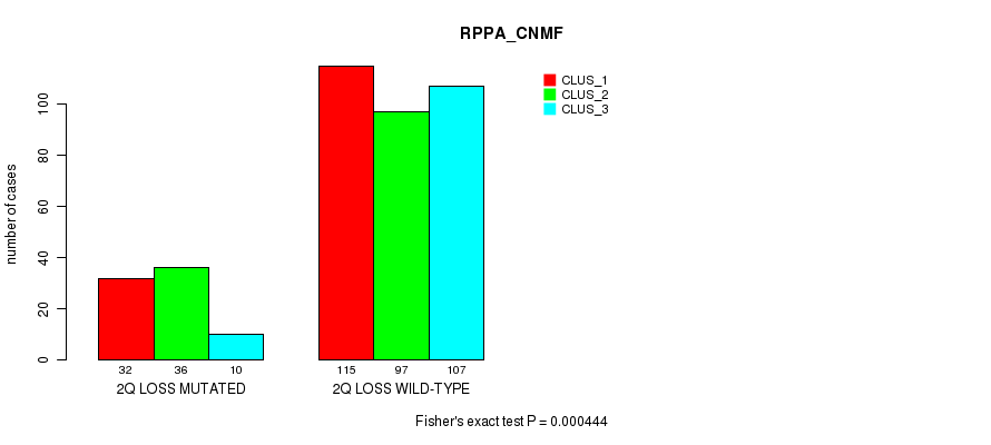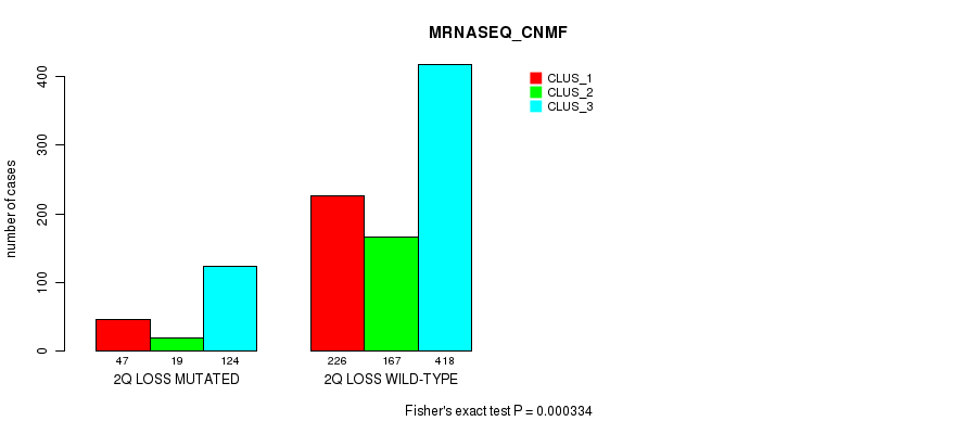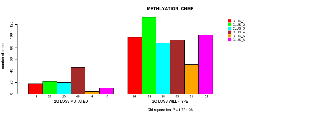 2q loss cnv correlated to 'CN_CNMF', 'METHLYATION_CNMF', 'RPPA_CNMF', 'MRNASEQ_CNMF', and 'MRNASEQ_CHIERARCHICAL'.