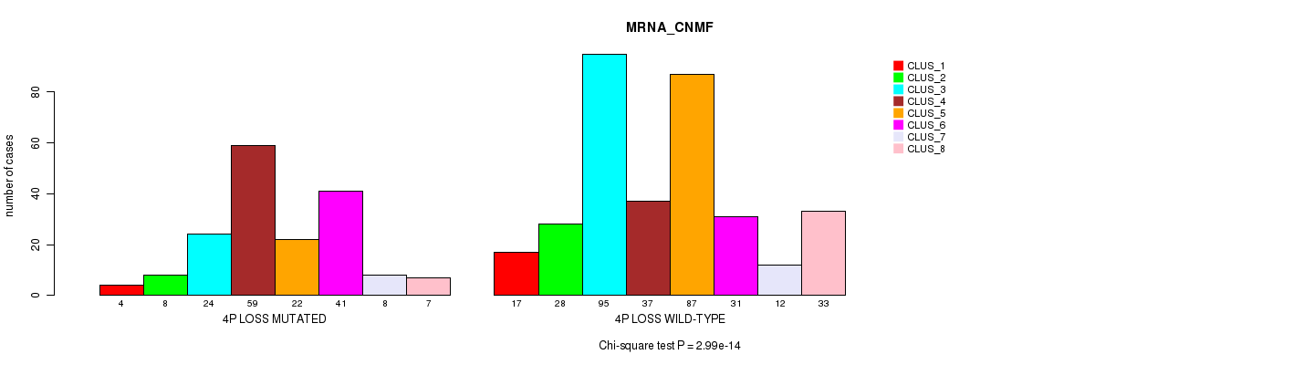 4p loss cnv correlated to 'MRNA_CNMF', 'MRNA_CHIERARCHICAL', 'CN_CNMF', 'METHLYATION_CNMF', 'RPPA_CNMF', 'RPPA_CHIERARCHICAL', 'MRNASEQ_CNMF', 'MRNASEQ_CHIERARCHICAL', 'MIRSEQ_CNMF', 'MIRSEQ_CHIERARCHICAL', 'MIRSEQ_MATURE_CNMF', and 'MIRSEQ_MATURE_CHIERARCHICAL'.