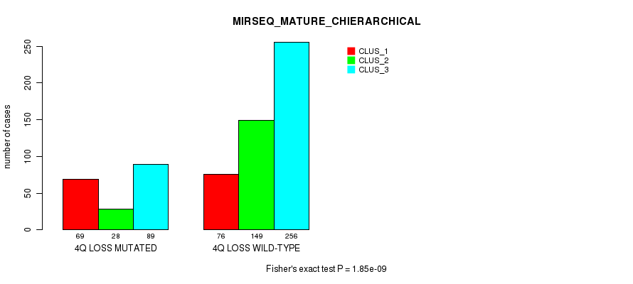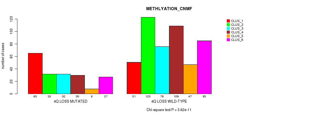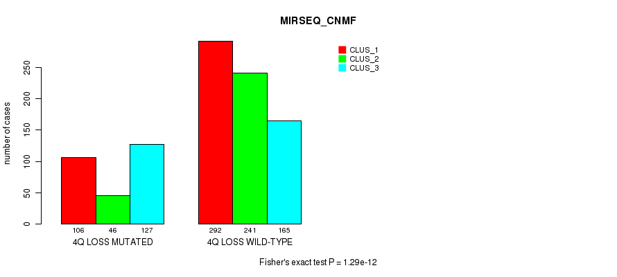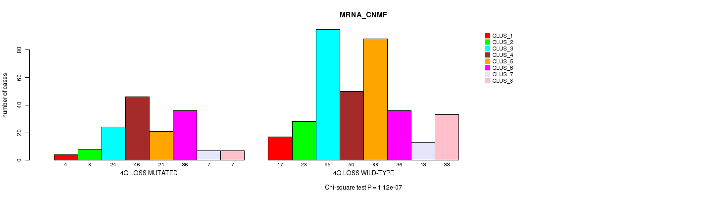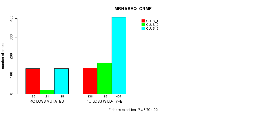 4q loss cnv correlated to 'MRNA_CNMF', 'MRNA_CHIERARCHICAL', 'CN_CNMF', 'METHLYATION_CNMF', 'RPPA_CNMF', 'MRNASEQ_CNMF', 'MRNASEQ_CHIERARCHICAL', 'MIRSEQ_CNMF', 'MIRSEQ_CHIERARCHICAL', 'MIRSEQ_MATURE_CNMF', and 'MIRSEQ_MATURE_CHIERARCHICAL'.