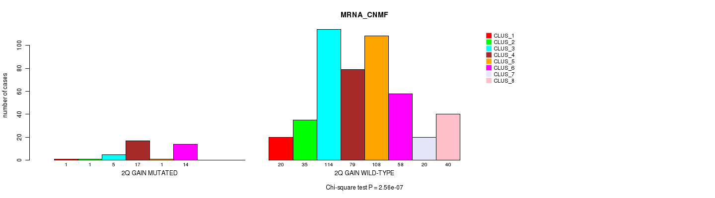 2q gain cnv correlated to 'MRNA_CNMF', 'MRNA_CHIERARCHICAL', 'CN_CNMF', 'METHLYATION_CNMF', 'RPPA_CNMF', 'RPPA_CHIERARCHICAL', 'MRNASEQ_CNMF', 'MRNASEQ_CHIERARCHICAL', 'MIRSEQ_CNMF', 'MIRSEQ_CHIERARCHICAL', 'MIRSEQ_MATURE_CNMF', and 'MIRSEQ_MATURE_CHIERARCHICAL'.