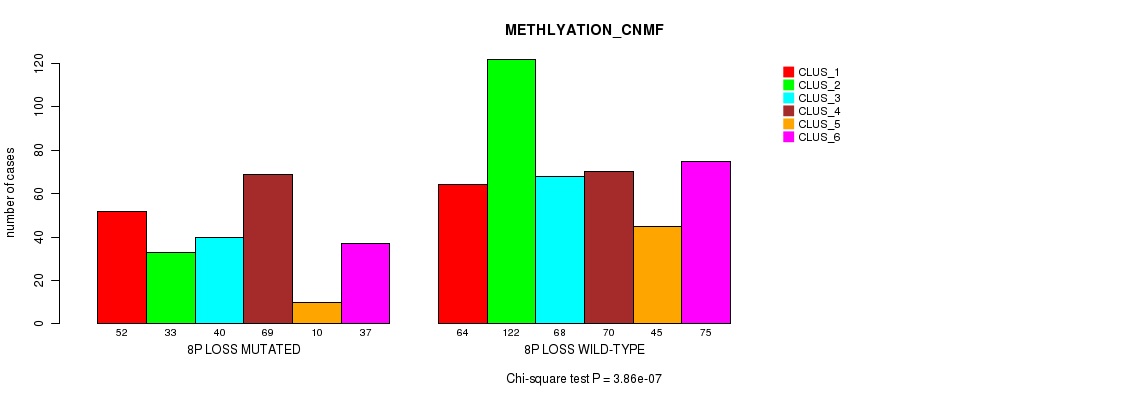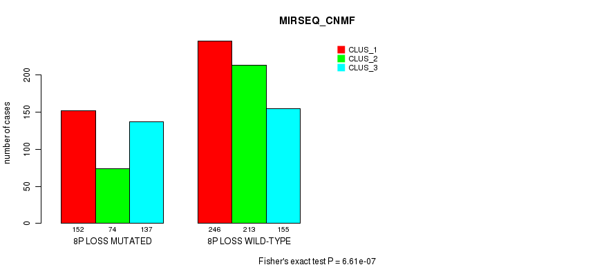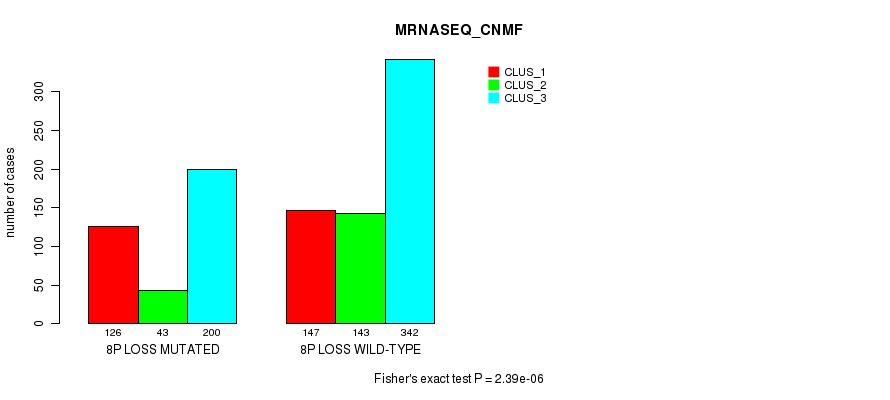 8p loss cnv correlated to 'MRNA_CNMF', 'CN_CNMF', 'METHLYATION_CNMF', 'MRNASEQ_CNMF', 'MRNASEQ_CHIERARCHICAL', 'MIRSEQ_CNMF', 'MIRSEQ_CHIERARCHICAL', and 'MIRSEQ_MATURE_CNMF'.