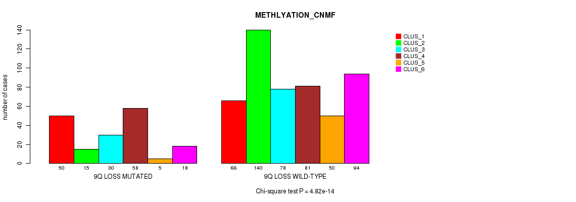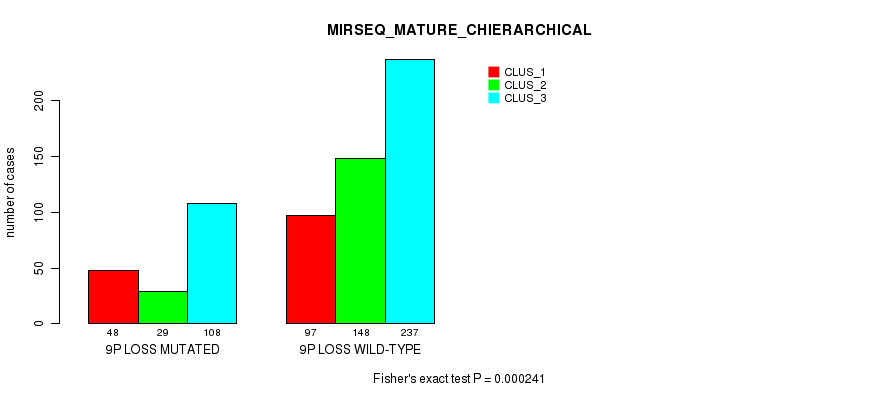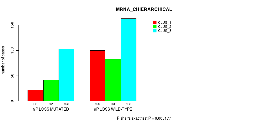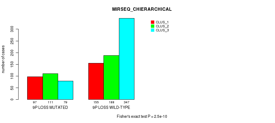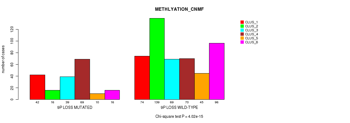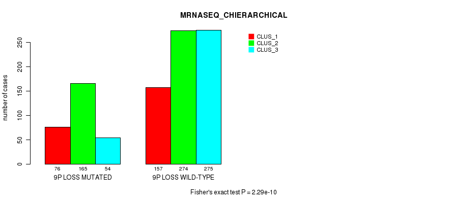 9p loss cnv correlated to 'MRNA_CNMF', 'MRNA_CHIERARCHICAL', 'CN_CNMF', 'METHLYATION_CNMF', 'MRNASEQ_CNMF', 'MRNASEQ_CHIERARCHICAL', 'MIRSEQ_CNMF', 'MIRSEQ_CHIERARCHICAL', 'MIRSEQ_MATURE_CNMF', and 'MIRSEQ_MATURE_CHIERARCHICAL'.