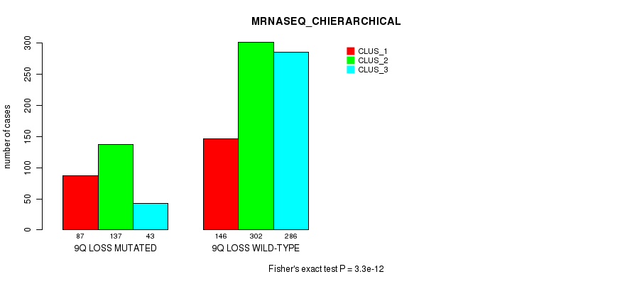 9q loss cnv correlated to 'MRNA_CNMF', 'MRNA_CHIERARCHICAL', 'CN_CNMF', 'METHLYATION_CNMF', 'RPPA_CNMF', 'RPPA_CHIERARCHICAL', 'MRNASEQ_CNMF', 'MRNASEQ_CHIERARCHICAL', 'MIRSEQ_CNMF', 'MIRSEQ_CHIERARCHICAL', 'MIRSEQ_MATURE_CNMF', and 'MIRSEQ_MATURE_CHIERARCHICAL'.