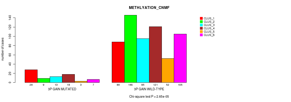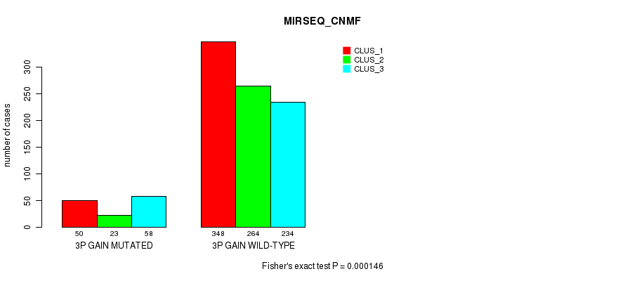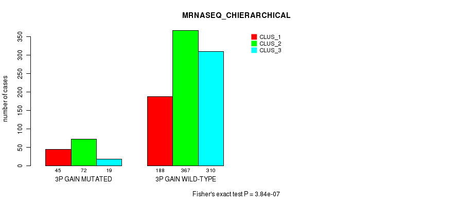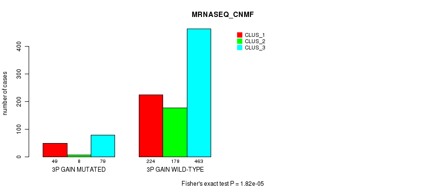 3p gain cnv correlated to 'CN_CNMF', 'METHLYATION_CNMF', 'MRNASEQ_CNMF', 'MRNASEQ_CHIERARCHICAL', 'MIRSEQ_CNMF', and 'MIRSEQ_CHIERARCHICAL'.