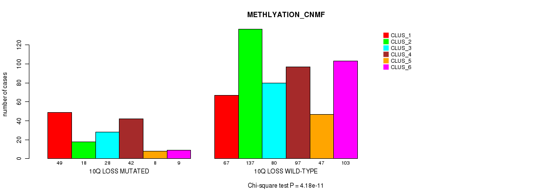 10q loss cnv correlated to 'CN_CNMF', 'METHLYATION_CNMF', 'MRNASEQ_CNMF', 'MRNASEQ_CHIERARCHICAL', 'MIRSEQ_CNMF', 'MIRSEQ_CHIERARCHICAL', and 'MIRSEQ_MATURE_CNMF'.