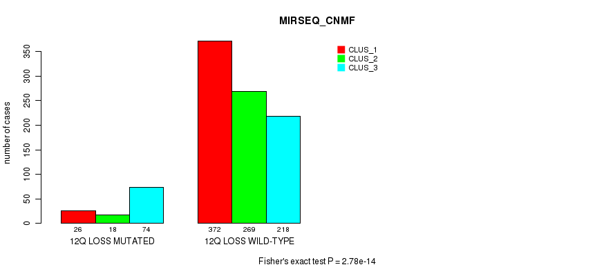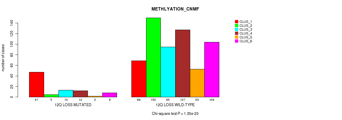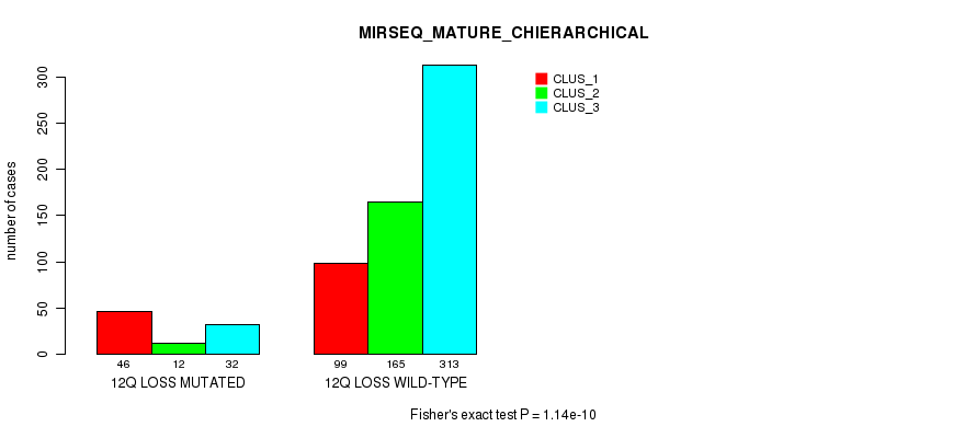 12q loss cnv correlated to 'MRNA_CNMF', 'MRNA_CHIERARCHICAL', 'CN_CNMF', 'METHLYATION_CNMF', 'RPPA_CNMF', 'RPPA_CHIERARCHICAL', 'MRNASEQ_CNMF', 'MRNASEQ_CHIERARCHICAL', 'MIRSEQ_CNMF', 'MIRSEQ_CHIERARCHICAL', 'MIRSEQ_MATURE_CNMF', and 'MIRSEQ_MATURE_CHIERARCHICAL'.