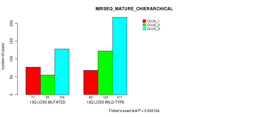Table S545. Gene #77: '20q loss' versus Molecular Subtype #12: 'MIRSEQ_MATURE_CHIERARCHICAL'
