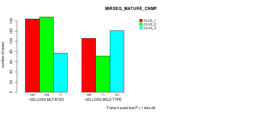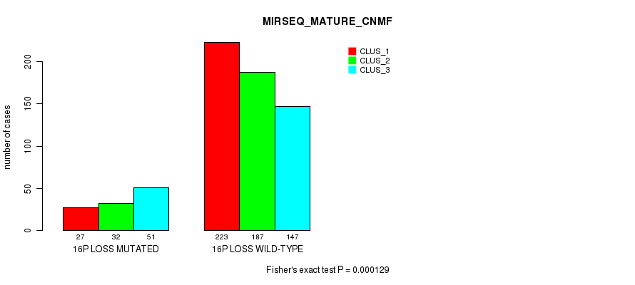 16p loss cnv correlated to 'CN_CNMF', 'MIRSEQ_CNMF', and 'MIRSEQ_MATURE_CNMF'.