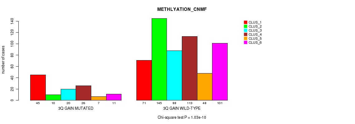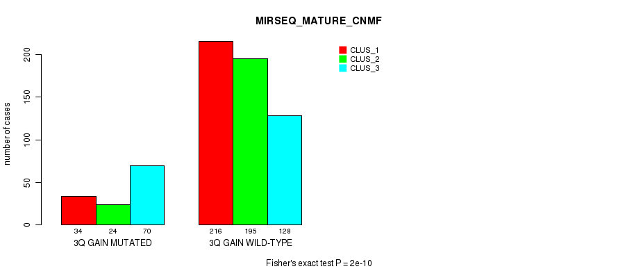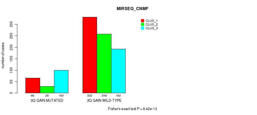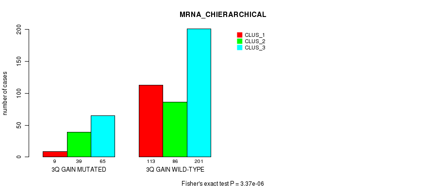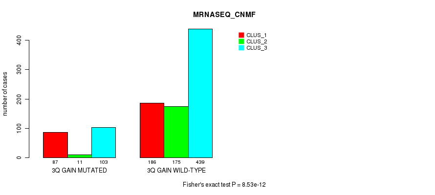 3q gain cnv correlated to 'MRNA_CHIERARCHICAL', 'CN_CNMF', 'METHLYATION_CNMF', 'MRNASEQ_CNMF', 'MRNASEQ_CHIERARCHICAL', 'MIRSEQ_CNMF', 'MIRSEQ_CHIERARCHICAL', 'MIRSEQ_MATURE_CNMF', and 'MIRSEQ_MATURE_CHIERARCHICAL'.