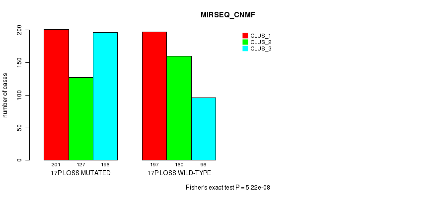 17p loss cnv correlated to 'MRNA_CNMF', 'CN_CNMF', 'METHLYATION_CNMF', 'RPPA_CNMF', 'MRNASEQ_CNMF', 'MRNASEQ_CHIERARCHICAL', 'MIRSEQ_CNMF', 'MIRSEQ_CHIERARCHICAL', and 'MIRSEQ_MATURE_CNMF'.