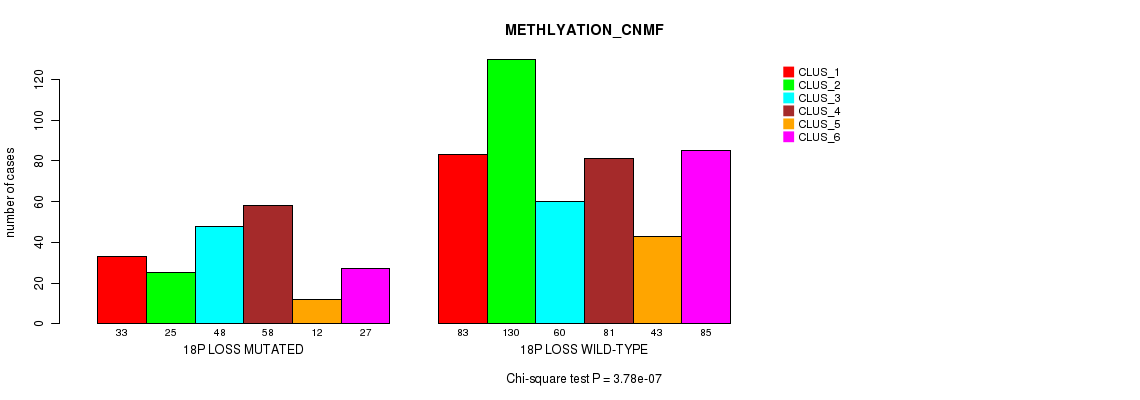 18p loss cnv correlated to 'MRNA_CNMF', 'CN_CNMF', and 'METHLYATION_CNMF'.