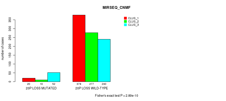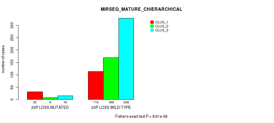 20p loss cnv correlated to 'CN_CNMF', 'METHLYATION_CNMF', 'MRNASEQ_CNMF', 'MRNASEQ_CHIERARCHICAL', 'MIRSEQ_CNMF', 'MIRSEQ_CHIERARCHICAL', 'MIRSEQ_MATURE_CNMF', and 'MIRSEQ_MATURE_CHIERARCHICAL'.