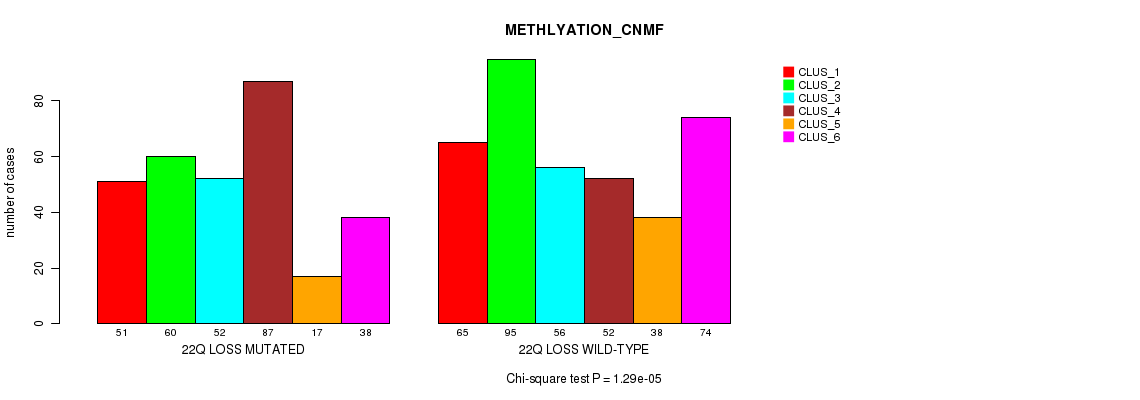 Figure S548. Get High-res Image Gene #79: '22q loss' versus Molecular Subtype #4: 'METHLYATION_CNMF'