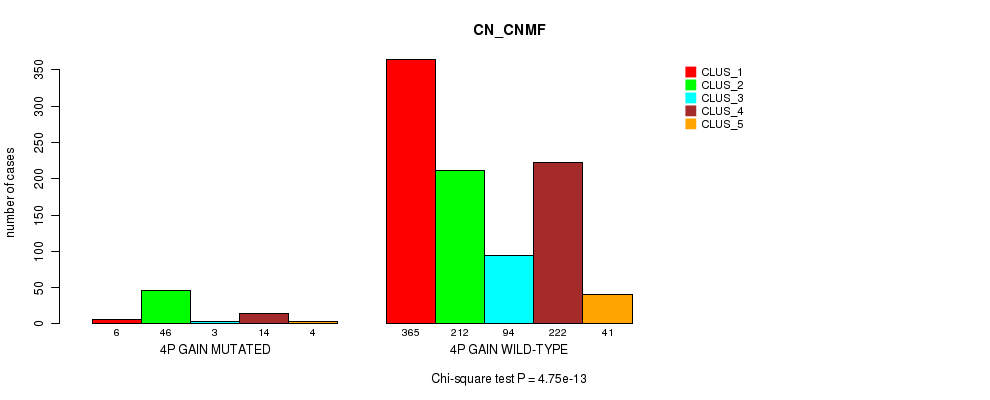 4p gain cnv correlated to 'MRNA_CNMF', 'CN_CNMF', 'METHLYATION_CNMF', and 'MIRSEQ_CHIERARCHICAL'.