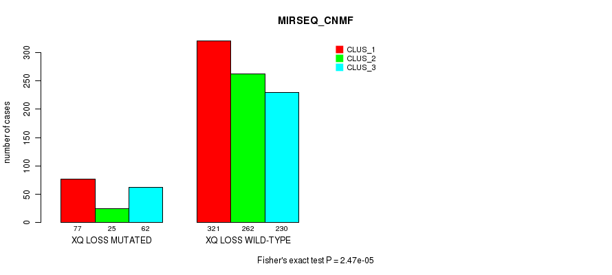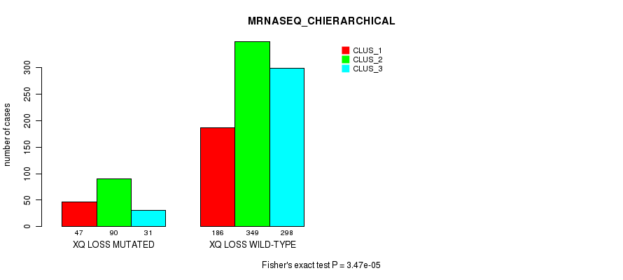 Figure S555. Get High-res Image Gene #80: 'xq loss' versus Molecular Subtype #10: 'MIRSEQ_CHIERARCHICAL'