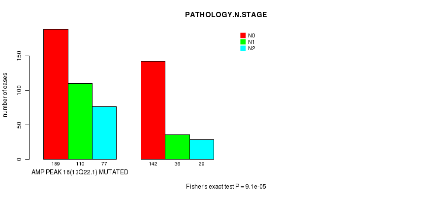 amp_13q22.1 cnv correlated to 'PATHOLOGY.N.STAGE' and 'HISTOLOGICAL.TYPE'.