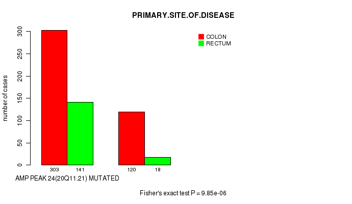 amp_20q11.21 cnv correlated to 'PRIMARY.SITE.OF.DISEASE' and 'HISTOLOGICAL.TYPE'.
