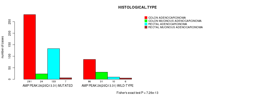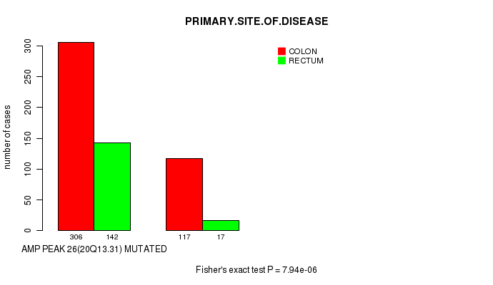amp_20q13.31 cnv correlated to 'PRIMARY.SITE.OF.DISEASE' and 'HISTOLOGICAL.TYPE'.