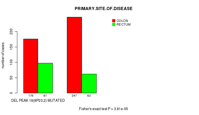 del_8p23.2 cnv correlated to 'PRIMARY.SITE.OF.DISEASE', 'PATHOLOGY.N.STAGE', and 'HISTOLOGICAL.TYPE'.