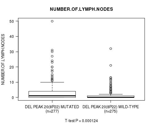 Figure S31. Get High-res Image Gene #47: 'del_8p22' versus Clinical Feature #12: 'NUMBER.OF.LYMPH.NODES'