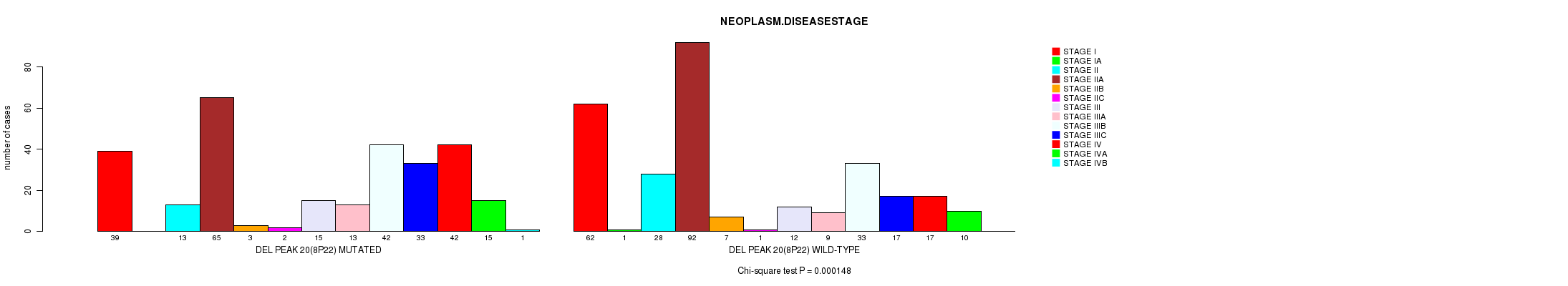 Figure S44. Get High-res Image Gene #67: 'del_18q22.1' versus Clinical Feature #4: 'NEOPLASM.DISEASESTAGE'