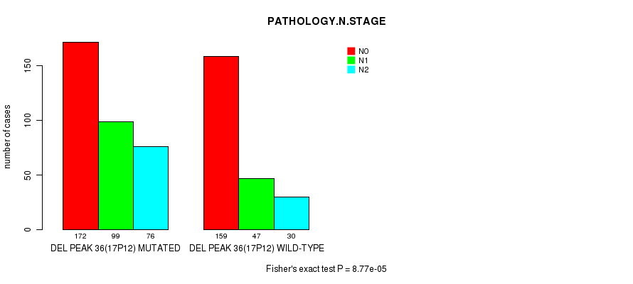 Figure S34. Get High-res Image Gene #63: 'del_17p12' versus Clinical Feature #6: 'PATHOLOGY.N.STAGE'