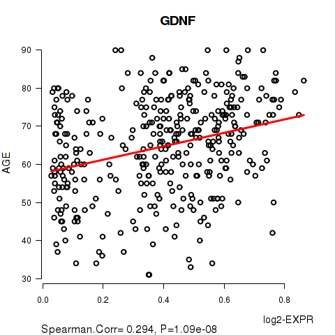 | GDNF | 0.2944 | 1.086e-08 | 0.000216 |