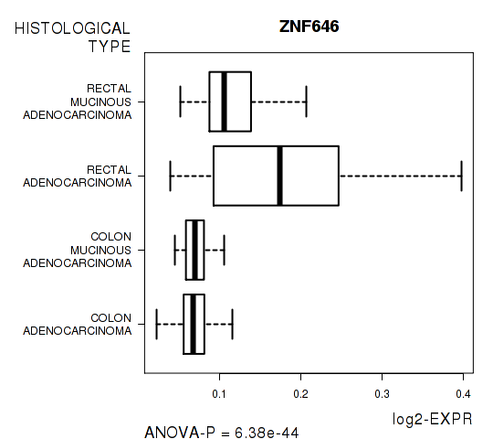 Figure S8. Get High-res Image As an example, this figure shows the association of ZNF646 to 'HISTOLOGICAL.TYPE'. P value = 6.38e-44 with ANOVA analysis.