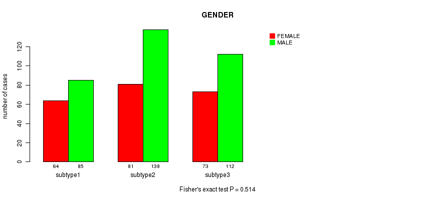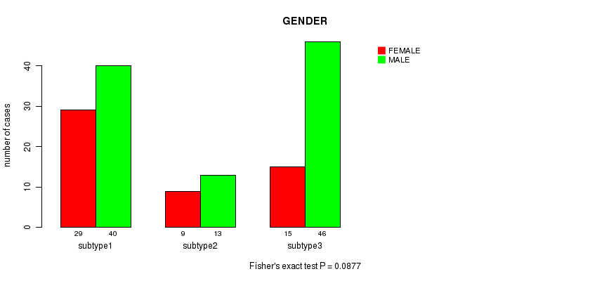 Figure S51. Get High-res Image Clustering Approach #9: 'RNAseq CNMF subtypes' versus Clinical Feature #3: 'GENDER'