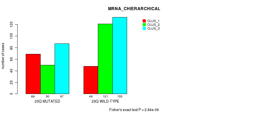 Table S74. Gene #37: '20q' versus Molecular Subtype #2: 'MRNA_CHIERARCHICAL'