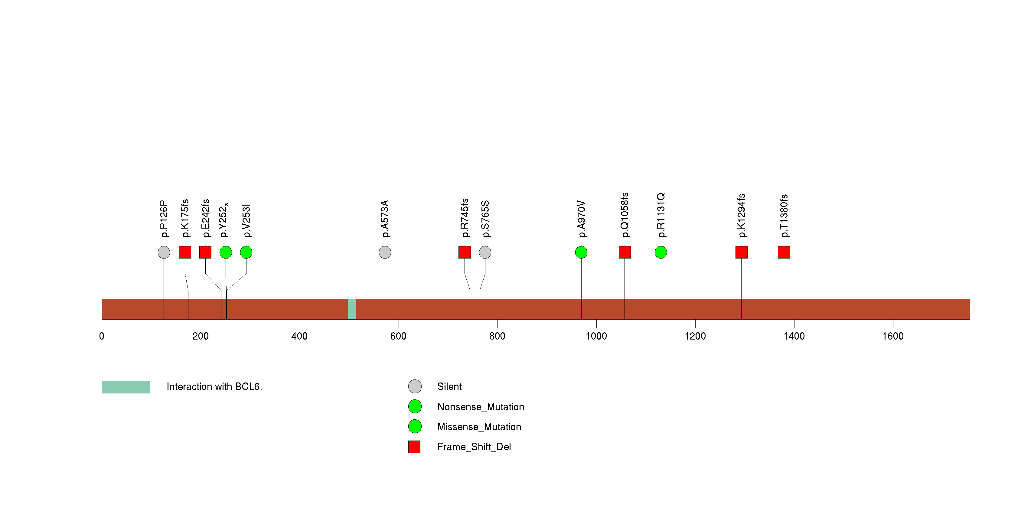 Figure S17. This figure depicts the distribution of mutations and mutation types across the BCOR significant gene.
