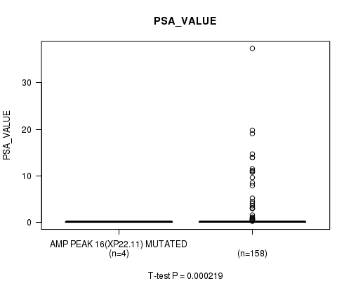 Table S3. Gene #16: 'amp_xp22.11' versus Clinical Feature #13: 'PSA_VALUE'