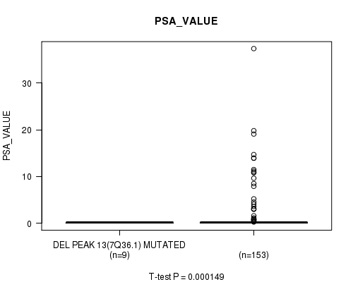 Figure S12. Get High-res Image Gene #37: 'del_7q36.1' versus Clinical Feature #13: 'PSA_VALUE'