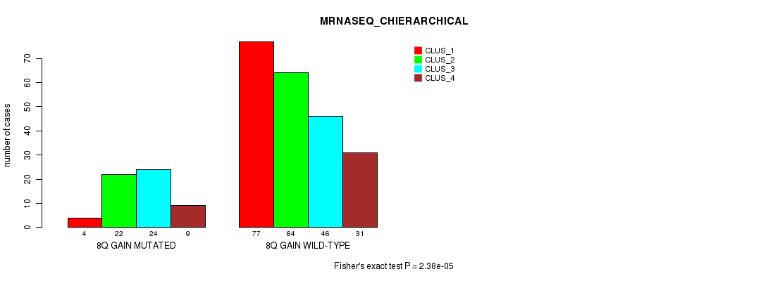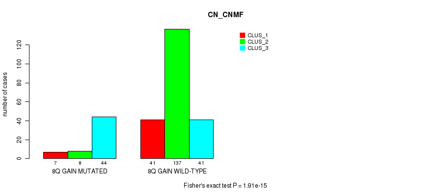 8q gain cnv correlated to 'CN_CNMF', 'METHLYATION_CNMF', and 'MRNASEQ_CHIERARCHICAL'.