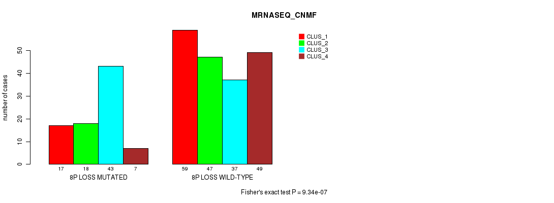 8p loss cnv correlated to 'CN_CNMF', 'METHLYATION_CNMF', 'MRNASEQ_CNMF', and 'MRNASEQ_CHIERARCHICAL'.