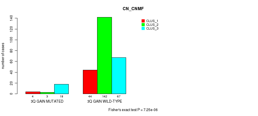 7q gain cnv correlated to 'CN_CNMF', 'METHLYATION_CNMF', and 'MRNASEQ_CNMF'.
