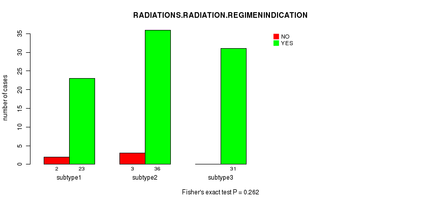 Figure S130. Get High-res Image Clustering Approach #12: 'MIRseq Mature cHierClus subtypes' versus Clinical Feature #9: 'RADIATIONS.RADIATION.REGIMENINDICATION'