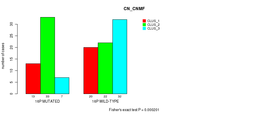 16p cnv correlated to 'CN_CNMF' and 'METHLYATION_CNMF'.